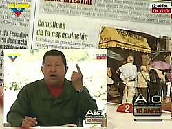 "Los empresarios dicen que deben aumentar los precios. ¿Por qué?. De ninguna manera lo vamos a aceptar...", dijo el Jefe de Estado desde el Fundo La Platera, del municipio Tinaco en Cojedes, donde realizó el primer programa del "Aló, Presidente" del 2010.