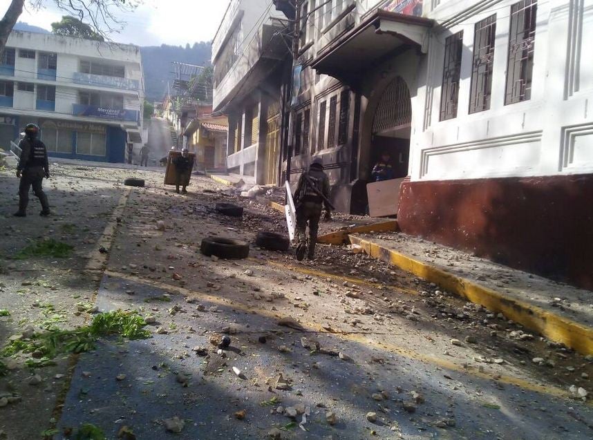 Asimismo, al momento de neutralizar la protesta intervino una comisión de la Policía de Mérida y en la acción, tres efectivos también sufrieron heridas. Los oficiales Jesús Caña y Jesús Morales fueron baleados en las piernas, mientras que la supervisora agregada, Yamilé Soto, presentó según diagnóstico médico, traumatismo en la mano izquierda.
