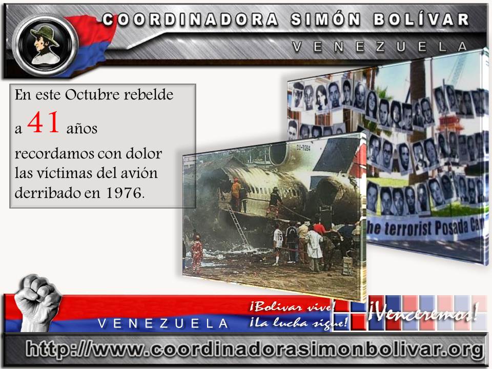 Este mes de octubre de 2017, se cumplen cuarenta y un año (41) desde que fallecieron setenta y tres (73) personas inocentes luego de un ataque terrorista que derribó al avión Douglas DC-8 de Cubana de Aviación en Barbados, atentado planificado por el cubano con nacionalidad venezolana, Luis Posada Carriles.