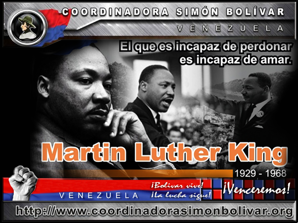 Que el ejemplo de Martin Luther King infunda de ánimos y valentía a aquellos seres de buen corazón en todo el mundo, y en especial a los que habitan dentro de las fauces del mounstro del capitalismo, para que su accionar catalice su transformación a través de la lucha revolucionaria. Martin Luther King, el hombre que construyó un sueño de igualdad.