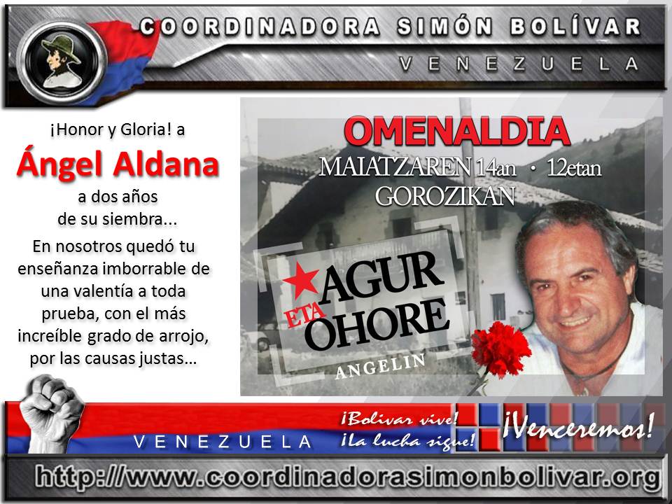 Es por ello, que los militantes de la Coordinadora Simón Bolívar, nos comprometemos, aún más, con la noble causa independentista vasca, como el mejor homenaje que podamos rendir a un camarada que lo dio todo por la Libertad, haciéndoles llegar nuestra mayor muestra de solidaridad, a sus familiares, así como a todos miembros del colectivo de refugiados y deportados vascos en Venezuela.