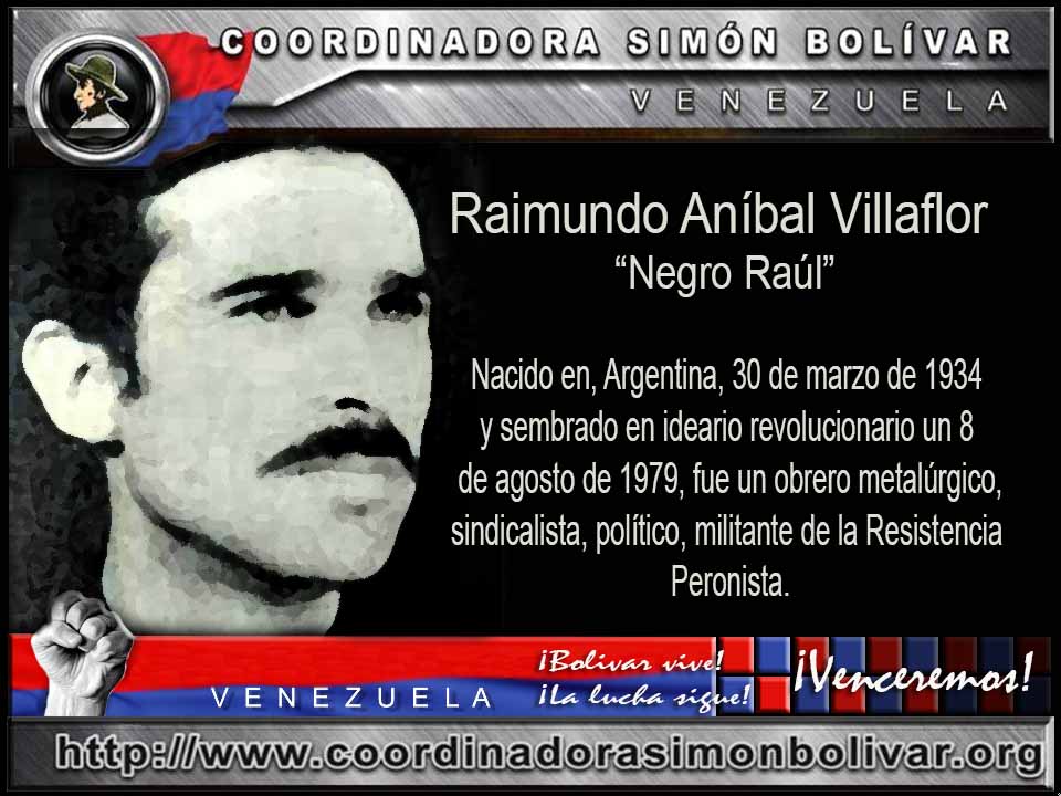 Raimundo Aníbal Villaflor ("Negro Raúl") nacido en, Argentina, 30 de marzo de 1934 y sembrado en ideario revolucionario un 8 de agosto de 1979, fue un obrero metalúrgico, sindicalista, político, militante de la Resistencia Peronista.