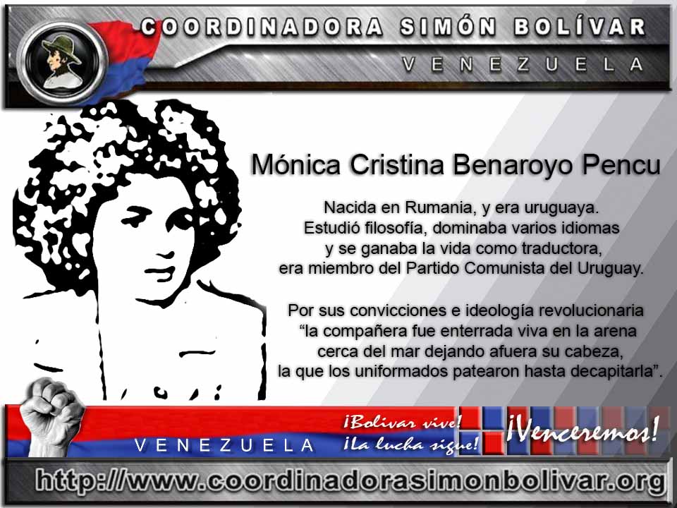 Mónica Benaroyo fue vista con vida por última vez el 11 de septiembre de 1973. Fue detenida por militares y trasladada a un recinto militar.