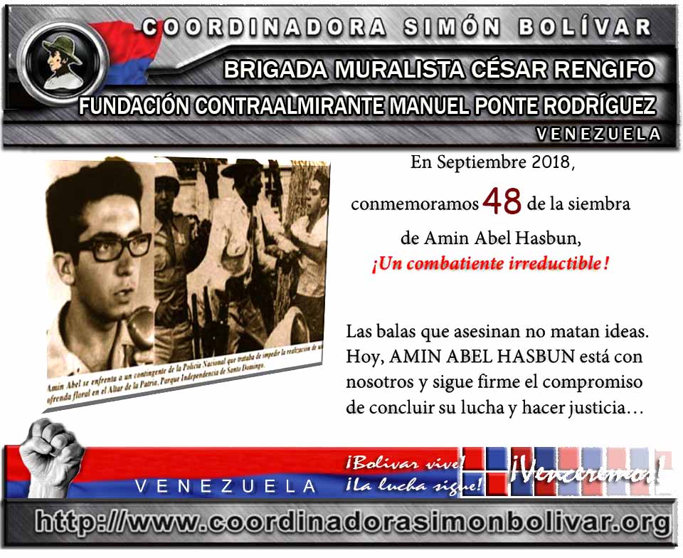 Cada 24 de septiembre los revolucionarios conmemoramos la siembra de AMIN ABEL HASBUN un insigne dirigente de izquierda. En este 2018 se cumplen cuarenta y ocho años (48) de su asesinato, el cual fuera cometido en 1970.