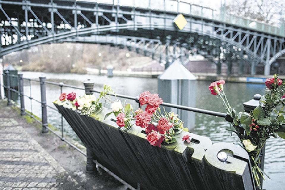 El memorial de Rosa Luxemburgo, en Berlín, cubierto de flores en el centenario de su muerte