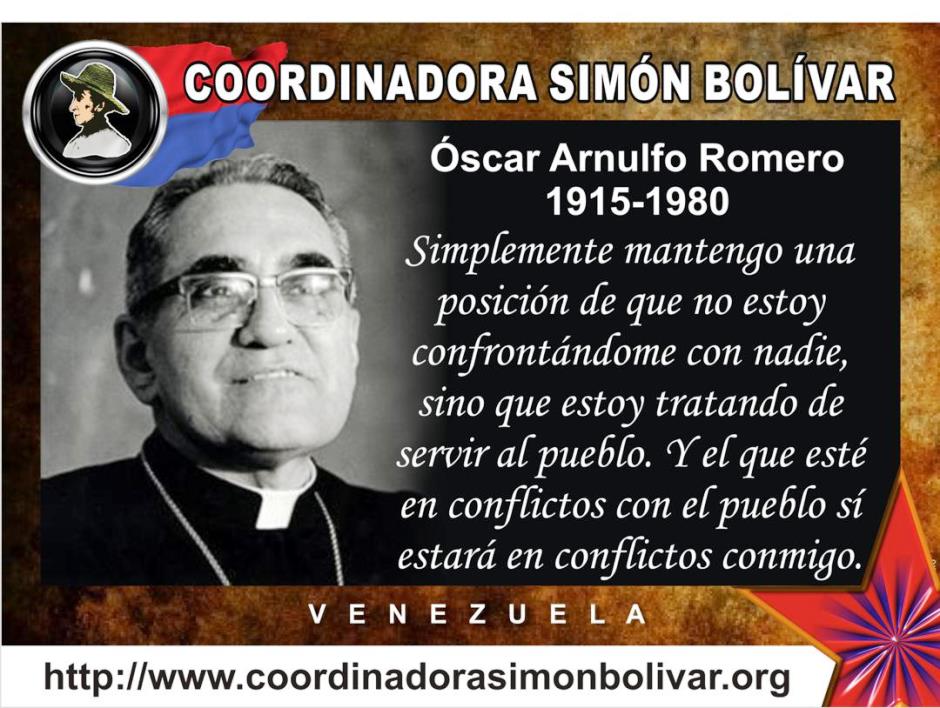 A 40 años de su asesino la Coordinadora Simón Bolívar rinde homenaje a este siervo de Dios que se puso del lado de los pobres.