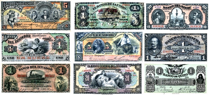 En 1900, la República del Ecuador adoptó el primer patrón-oro y la convertibilidad, (canjear billetes por oro) en una época en la cual sólo existían bancos privados, a los que se impuso la obligación de mantener primero un 30% y después el 50% de respaldo en oro para la emisión de billetes. El Banco del Ecuador (BE) y el Banco Comercial y Agrícola (BCA), ambos en Guayaquil, así como el Banco del Pichincha (BP) en Quito y el Banco del Azuay (BA) en Cuenca, eran los bancos de emisión. Sin embargo, un Decreto Legislativo del 30 de agosto de 1914 ("Ley Moratoria"), sancionado por el presidente Leonidas Plaza Gutiérrez (1912-1916), estableció la inconvertibilidad.