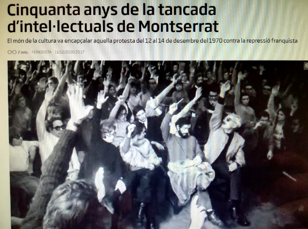 ... Hubo un encierro de intelectuales en Montserrat en protesta contra el proceso de Burgos, donde el dictador Franco se preparaba para ejecutar a seis militantes de ETA. Eran tiempos en que la lucha antifranquista se iba desplegando. Había ya manifestaciones, huelgas o paros en algunas empresas. Era el 12 de diciembre de 1970. El movimiento obrero empezaba a ser importante e iría creciendo año tras año hasta que los dirigentes de partidos obreros lograron desviarlo hacia una lucha parlamentaria dentro de lo que sería llamado "régimen del 78". Pero ese encierro fue un aldabonazo en todo el país e internacional.