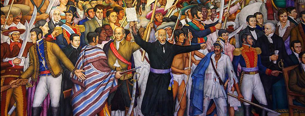 Sin embargo, en México el proceso tuvo grandes diferencias. Se inició un año más tarde que la Revolución de Quito. Para septiembre de 1810 ya había un grupo de conspiradores en movimiento; y el 16 de septiembre, el cura Miguel Hidalgo aprovechó de la misa para levantar la revolución ("Grito de Dolores"). Se convirtió en un movimiento de campesinos e indígenas, de modo que en México la rebelión fue auténticamente popular (en Haití, en 1804, la primera independencia latinoamericana, fue obra de esclavos, negros y mulatos), lo que provocó la asustada alineación de los criollos y "blancos" en la defensa de la autoridad legítima, listos para frenar a semejante plebe. Vencido Hidalgo (además fusilado y decapitado) al año siguiente, la revolución siguió bajo el liderazgo de otro cura: José María Morelos, igualmente vencido (y fusilado) en 1815. Resurgirá la lucha en 1817; pero solo con el "Plan de Iguala" (1821) se logró unificar fuerzas hasta vencer definitivamente a los realistas el 27 de septiembre de 1821. Con la entrada rebelde a la ciudad de México, quedó sellada la independencia del país.