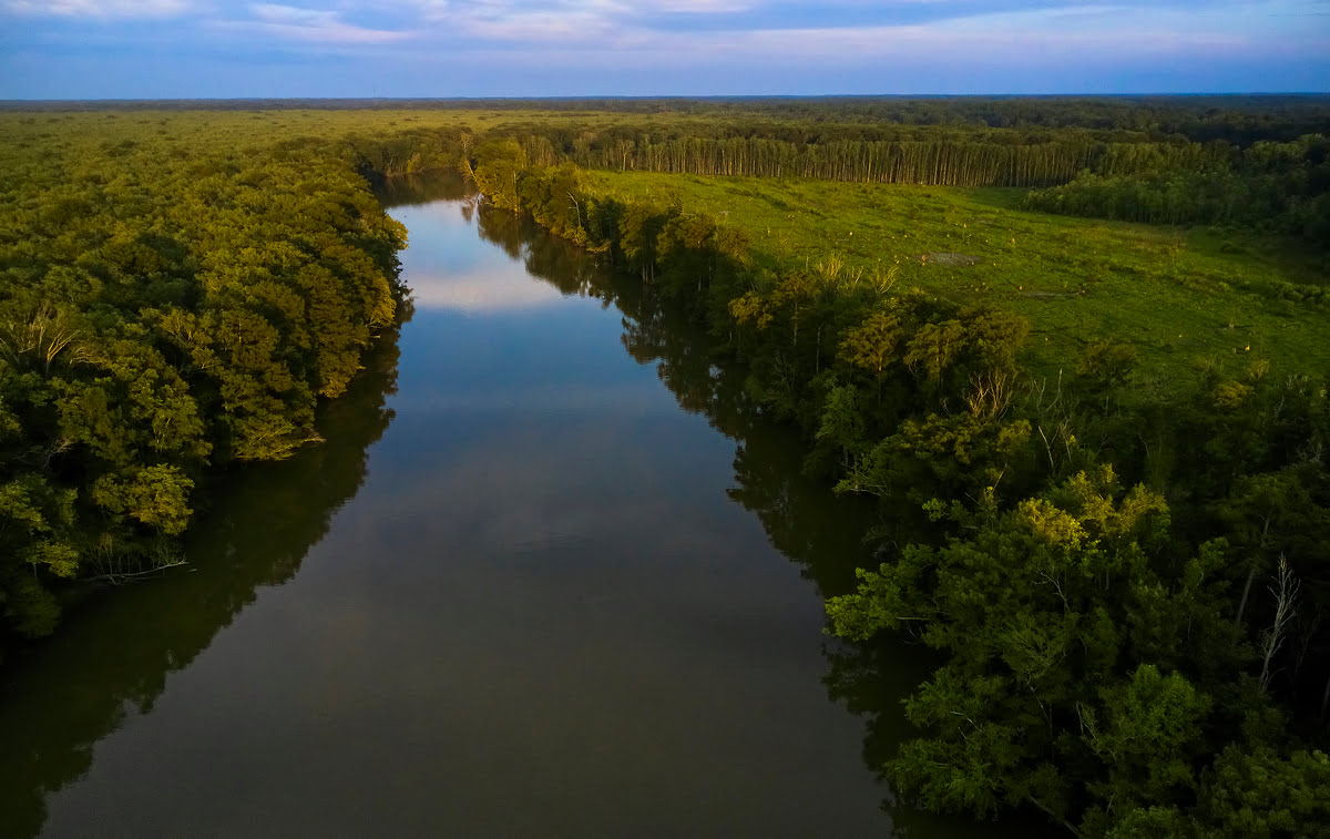 Imagen de un dron del río Roanoke en Jamesville, NC, en julio. (Justin Cook para El margen)