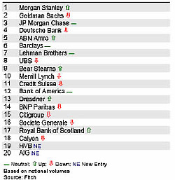Los primeros cuatro de la lista han mencionado los problemas financieros que tienen a causa de los CDx y a esos apuntan el plan de Paulson del 19 de setiembre. Ese mismo día el FED ha prohibido la venta de acciones a la baja de los bancos de inversión, apuntando a los tres primeros de la lista. En simultáneo, los bancos comerciales más importantes del mundo crearon un fondo por 70 mil millones de dólares para el rescate fuera de Estados Unidos apuntando a Deutche Bank, Amro y Barclays, y varios gobiernos (Japón, Suiza, Estados Unidos, Inglaterra y el Banco Central de Europa) crearon un mega fondo con un monto de 180 mil millones de dólares. apuntando a rescatar Union de la Banque Suisse, HVB, Dresdner, y otros bancos.