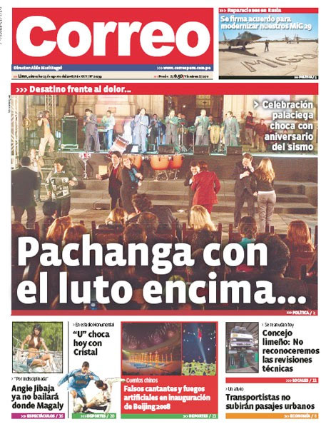El diario limeño Correo criticó en su portada la “Pachanga (fiesta) con el luto encima”, mientras que el rotativo “La República” puso en primera plana la fotografía de García con la frase “La danza de las alzas”, en alusión al incremento de los precios de los combustibles y alimentos en Perú.