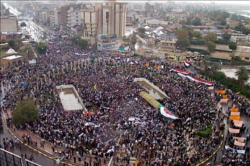 Los manifestantes, a quienes se sumaron musulmanes sunnitas, recorrieron calles de la capital para reclamar el cese de la presencia foránea en respuesta al llamado de Al-Sadr a todos los iraquíes para unirse a la marcha en la céntrica Plaza Firdous.
