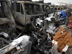 23 de abril 2009. - Once camiones cargados de material para las fuerzas de la OTAN en Afganistán fueron destruidos por presuntos talibanes en el noroeste de Pakistán, anunció este domingo la policía paquistaní.