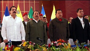En la reunión del Alba participaron los mandatarios de Venezuela, Hugo Chávez, Honduras, Manuel Zelaya, Ecuador, Rafael Correa, y el canciller de Cuba, Bruno Rodríguez.