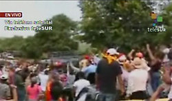 TeleSUR _ jul. 25 de 2009.- Manifestantes hondureños intentan trasladarse a la localidad de Las Manos paso fronterizo entre Nicaragua y Honduras, para reencontrarse con el presidente, Manuel Zelaya, se espera que el mandatario ofrezca una rueda de prensa en este lugar.