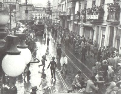 Tres tanques encabezan la embestida contra el palacio presidencial. Los tanques llevan gente encima, gente agitando banderas y gritando el nombre de Gaitán, y detrás arremete la multitud erizada de machetes, hachas y garrotes. No bien llegan a palacio, los tanques se detienen. Giran lentamente las torretas, apuntan hacia atrás y empiezan a matar pueblo a montones.