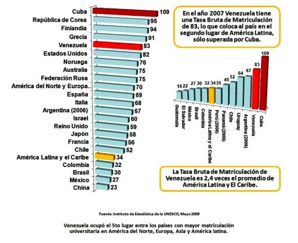 20 sept. 2010 - Según cifras del Instituto de Estadística de la Organización de las Naciones Unidas para la Educación, la Ciencia y la Cultura (Unesco), Cuba es el país del mundo con mayor tasa bruta de matricula universitaria con el 109%.