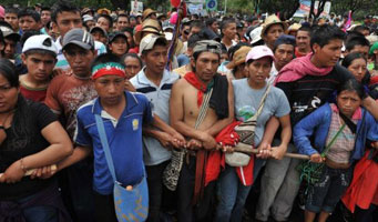 La manifestación reunió a centenares de indígenas que marcharon en defensa de sus derechos.