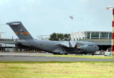 5-Remita la documentación referida al momento preciso de entrada a nuestro país de la aeronave C-17 Globemaster III, matrícula 77187, de su salida, del material que efectivamente portaba y del destino del mismo, en detalle.