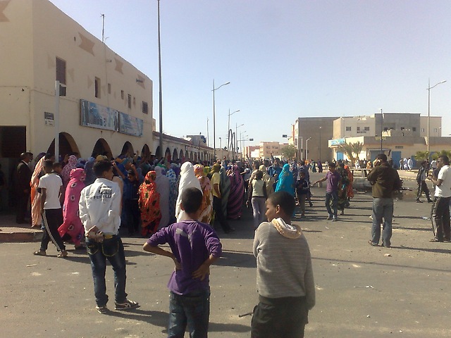 En estos momentos aproximadamente 400 saharauis están protestando ante la Delegación del Gobierno de la ciudad de Dajla, para exigir la eliminación del campamento de los colonos marroquíes que Marruecos instáló en esta ciudad en el año 1991. Este campamento es uno de los que Marruecos instaló en ese año para incluir a los colonos marroquíes entre los votantes en el Referendum de Autodeterminación del Sahara.