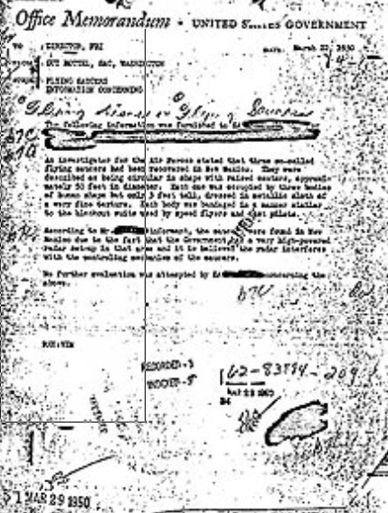Documento desclasificado del FBI sobre los ovnis y extraterrestres que se estrellaron en Roswell, Nuevo México