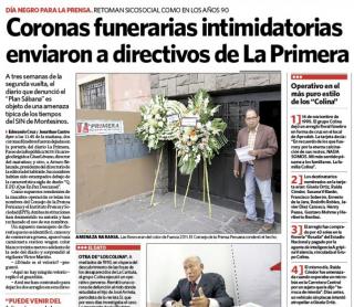 12 de mayo 2011.-Los directivos del diario La Primera recibieron este miércoles dos coronas fúnebres tras publicar un supuesto complot contra la candidatura presidencial del nacionalista Ollanta Humala.