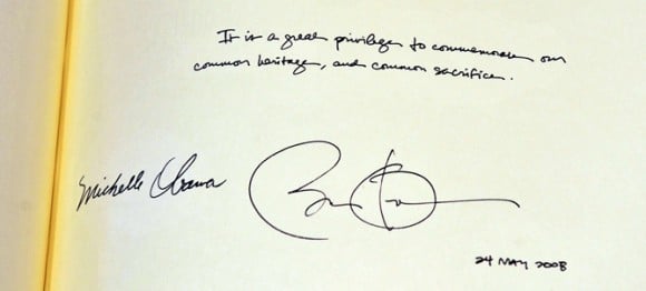 Obama erró la fecha de la firma por tres años. Un portavoz del templo confirmó al Daily Telegraph que, efectivamente, fue el presidente el que estampó su rúbrica en el libro.