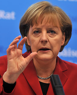La canciller alemana, Angela Merkel. (Ahora le obsequiarán el tango Los Mareados, seguramente...)
