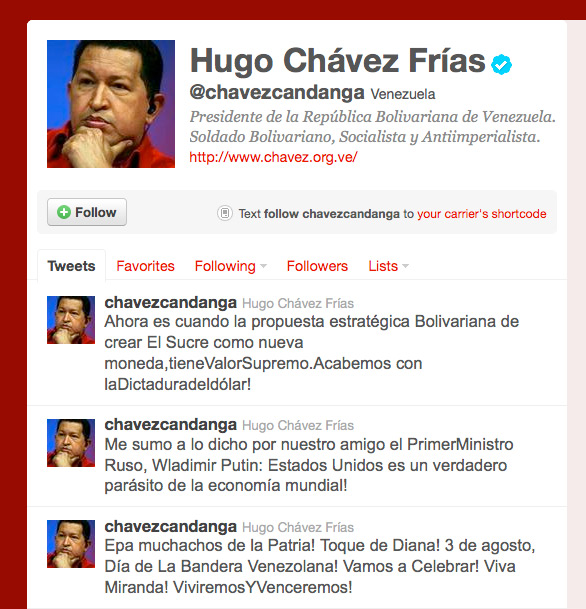 Caracas, agosto 3 El primer mandatario nacional, Hugo Chávez, inició la jornada del día con un saludo a través de su cuenta en Twitter, como lo hace regularmente. En esta ocasión por el Día de la Bandera, exhortó a sus seguidores a celebrar.