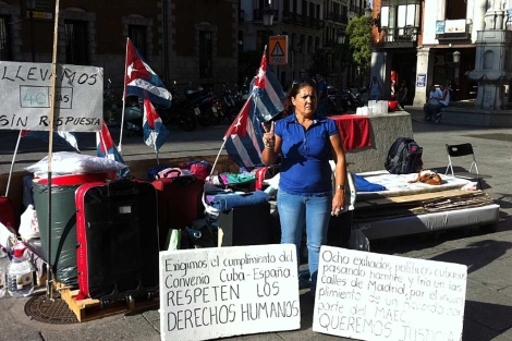 27/09/11.-“Nunca hubiéramos salido de nuestro país para dormir en la calle”, denuncia Sabina, hermana del reo excarcelado Carlos Martín Gómez e integrante, a su vez, del movimiento Damas de Blanco.