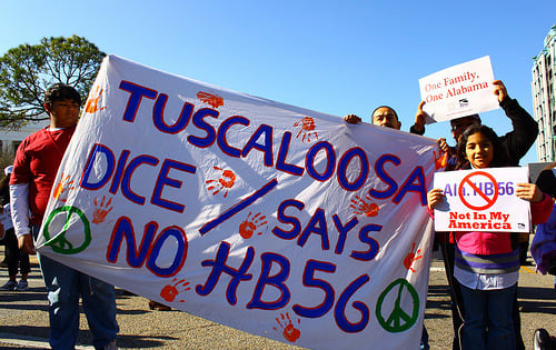 El estado de Alabama aprobó desde el 2011 la controversial legislación HB 56 que se considera la ley anti-inmmigrante mas estricta de los Estados Unidos. Organizaciones de defensa de los derechos civiles como el American Civil Liberties Union (ACLU, por sus siglas en inglés) coinciden en que la ley de Alabama rebasa los alcances de la polémica ley SB 1070 de Arizona al otorgar autoridad a los policías, incluyendo a la policía de autopistas, para verificar el estatus migratorio de sospechosos.