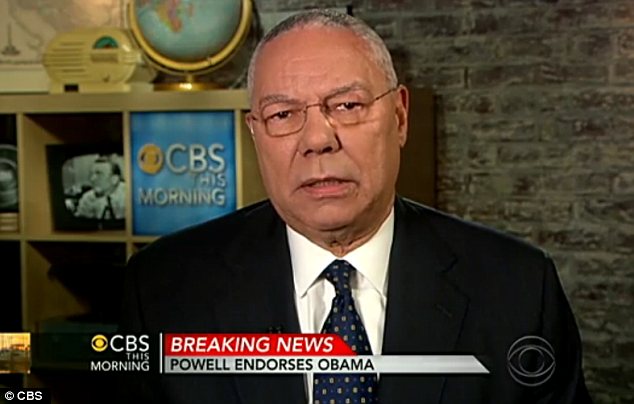 Powell, un republicano conservador que formó parte del gabinete de gobierno durante el régimen de George W. Bush, respaldó a Obama en 2008. Powell fue mencionado con frecuencia como un potencial rival republicano contra Bill Clinton en 1996, pero decidió no serlo.
