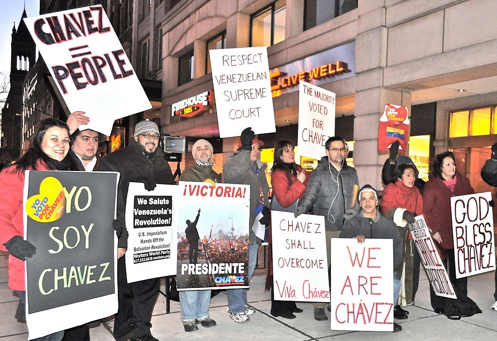 Boston, 23 de Enero de 2013.- Venezolanos residentes en Boston junto a activistas sociales de diferentes nacionalidades, se dieron cita en frente del Consulado General de la República Bolivariana de Venezuela en esa ciudad para mostrar su apoyo al Gobierno Bolivariano y desearle una pronta recuperación al Presidente Chávez.