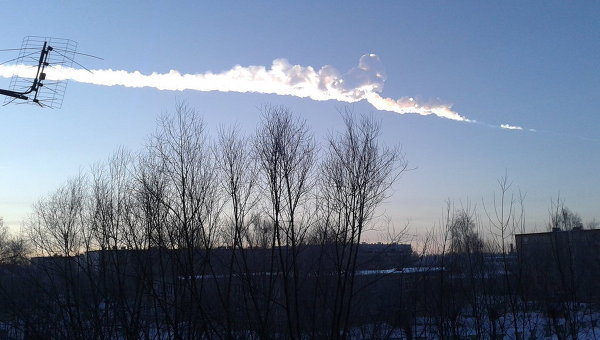 Según el Observatorio de Yekaterimburgo, una lluvia de meteoritos acompañada con surcos de humo cayó sobre Cheliabinsk a las 03.23 GMT. Según testimonios de testigos, los habitantes de la ciudad oyeron una fuerte detonación cuya honda expansiva rompió cristales en las ventanas de edificios de viviendas.