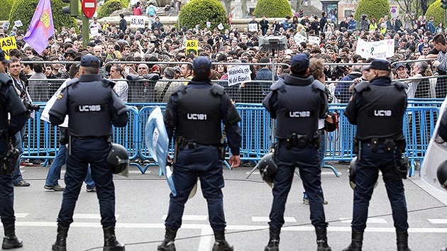 Cientos de españoles se reunieron en el centro de Madrid para manifestar frente al Congreso de los Diputados en protesta contra las políticas sociales y económicas que han llevado a la sociedad española a la pobreza. Los manifestantes más radicales lanzaban toda clase de objetos contra la Policía, incluso piedras y bengalas, arrancaban adoquines de la calle.