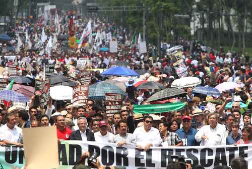 Convocada con cuatro días de anticipación por alrededor de 300 personas –entre ellas el propio Cárdenas, el ex rector de la UNAM, Pablo González Casanova, el obispo Raúl Vera y Adolfo Gilly–, así como decenas de agrupaciones sociales y gremiales, la marcha logró congregar a tirios y troyanos.