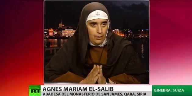 17-09-13.-La religiosa Agnès-Mariam de la Croix dijo a RT que hizo su propia investigación del incidente que se cobró la vida de centenares de personas en Guta, un suburbio oriental de la capital siria, basándose en los materiales obtenidos de los comentarios de los vecinos de las zonas montañosas de Latakia.