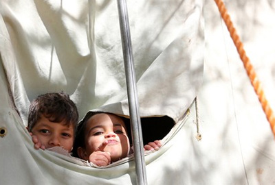 Dos niños refugiados sirios en un campamento de Naciones Unidas