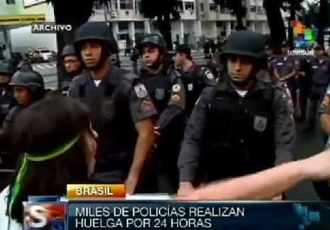 21 mayo 2014 - La policía brasileña destacada en Sao Paulo y Río de Janeiro inició una huelga para exigir aumento salarial de 80 por ciento. En tanto los conductores de autobuses públicos paralizaron 14 de las 28 terminales de esa misma ciudad para pedir un incremento de salario del 30 por ciento y mejoras laborales.