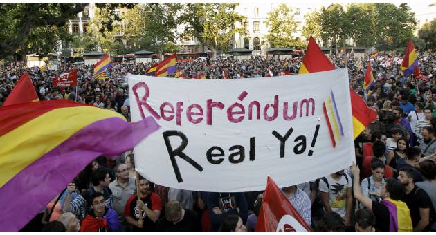03 de Junio.- Este lunes, tras la abdicación del rey Juan Carlos I, miles de ciudadanos salieron a las calles de España a favor de la abolición de la monarquía y la instauración de la Tercera República por medio de un referendo constituyente. Los medios de comunicación de la nación europea omitieron estas concentraciones, que en lugares como La Puerta del Sol, en Madrid, llegaron hasta las 20.000 personas.