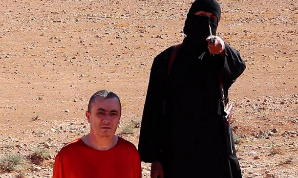 El verdugo, cuya voz parece haber sido modificada electrónicamente, tiene sin embargo un acento británico y parece ser el mismo, según SITE, que asesinó a mediados de septiembre al rehén británico David Haines.