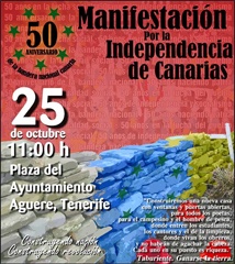 Tenerife, octubre 11 - Organizaciones canarias convocaron este sábado a manifestar el próximo 25 de octubre por la separación de esa región de España, en ocasión de los 50 años de la bandera tricolor con siete estrellas verdes que identifica a esa corriente.