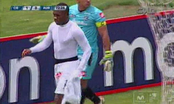 Los hinchas celestes de Cristal lo insultaron e intentó abandonar el campo, pero sus compañeros y los rivales lo convencieron de seguir en el partido.