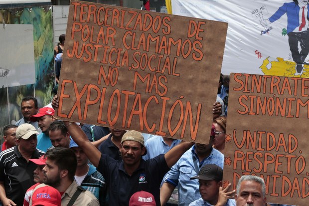 Caracas, julio 15 - Representantes del sindicado de Polar aplauden laudo arbitral donde se le exige al presidente de la transnacional, Lorenzo Mendoza, reunirse con el personal obrero para discutir derechos laborales.