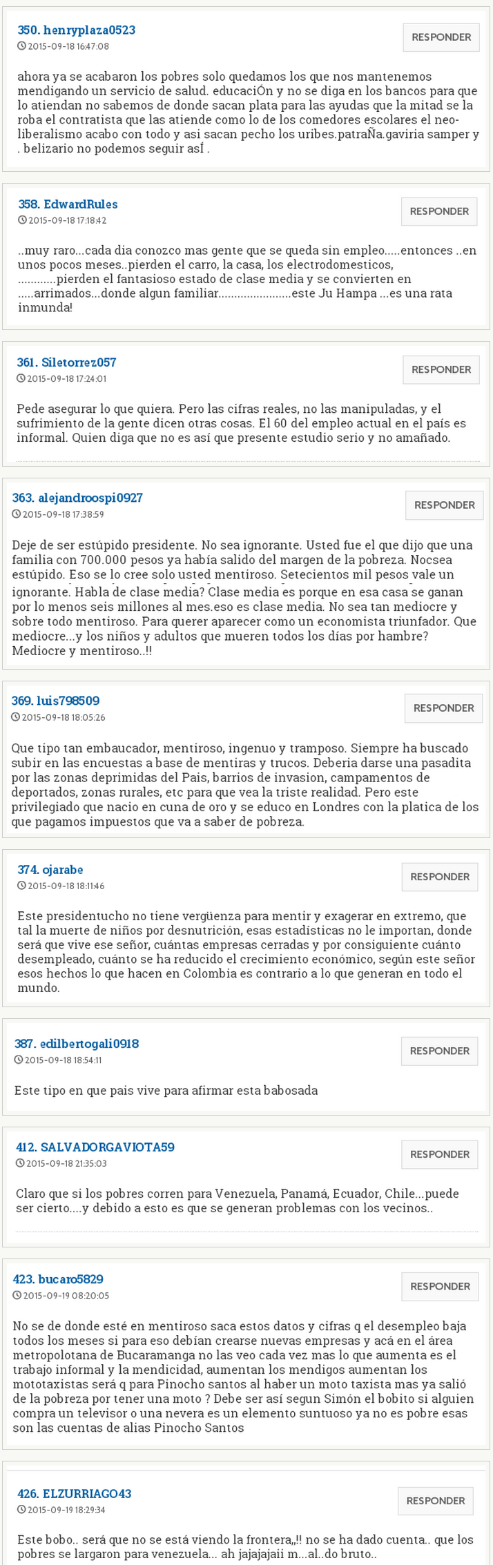 La información fue publicada por el diario "El Tiempo" que coincidencialmente pertenece a su familia, pero los lectores de este diario en en su totalidad colombianos alzaron su voz de indignación participando en la parte de opinión para referirse qué piensan sobre este anuncio de su presidente.