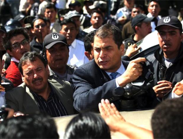En medio de una sublevación policial por presuntos reclamos gremiales, Correa fue retenido por más de 10 horas en el Hospital de la Policía y su liberación se logró gracias a la intervención del Ejército.