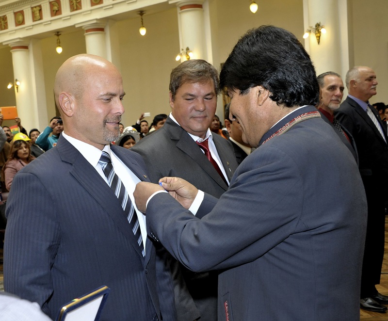 La Paz, octubre 5 - El Gobierno de Bolivia otorgó el lunes la condecoración 'Legión de Honor Mariscal Andrés de Santa Cruz', en el grado de 'Caballero', a los seis héroes cubanos que lucharon contra el terrorismo, cinco de ellos presos en Estados Unidos y uno en Somalia, a quienes el presidente Evo Morales calificó de "héroes latinoamericanos".