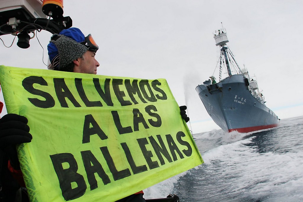 Japón caza ballenas aprovechando un vacío de la moratoria de 1986, que permite la caza con fines científicos. El Gobierno tampoco esconde que muchas de las ballenas cazadas vendidas para el consumo.