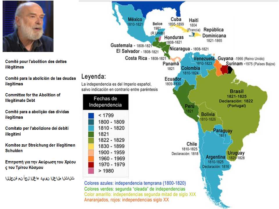 Toussaint hurga en la historia de los endeudamientos,reestructuraciones y mecanismos favorables a los acreedores que sirvieron para expoliar, generar dependencias y justificar intervenciones, aunque en principio, incluso, comenzaran con el financiamiento de luchas por la independencia para buscar arrebatar el dominio a potencias en disputa.